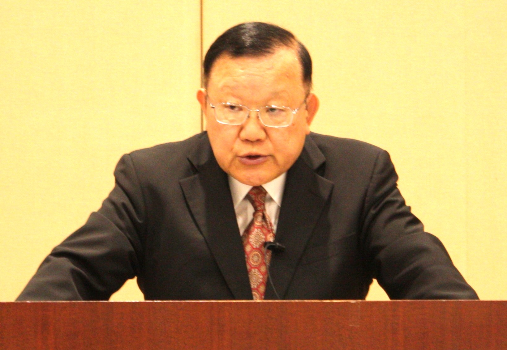 講演をいただく時事総合研究所客員研究員の明石和康氏