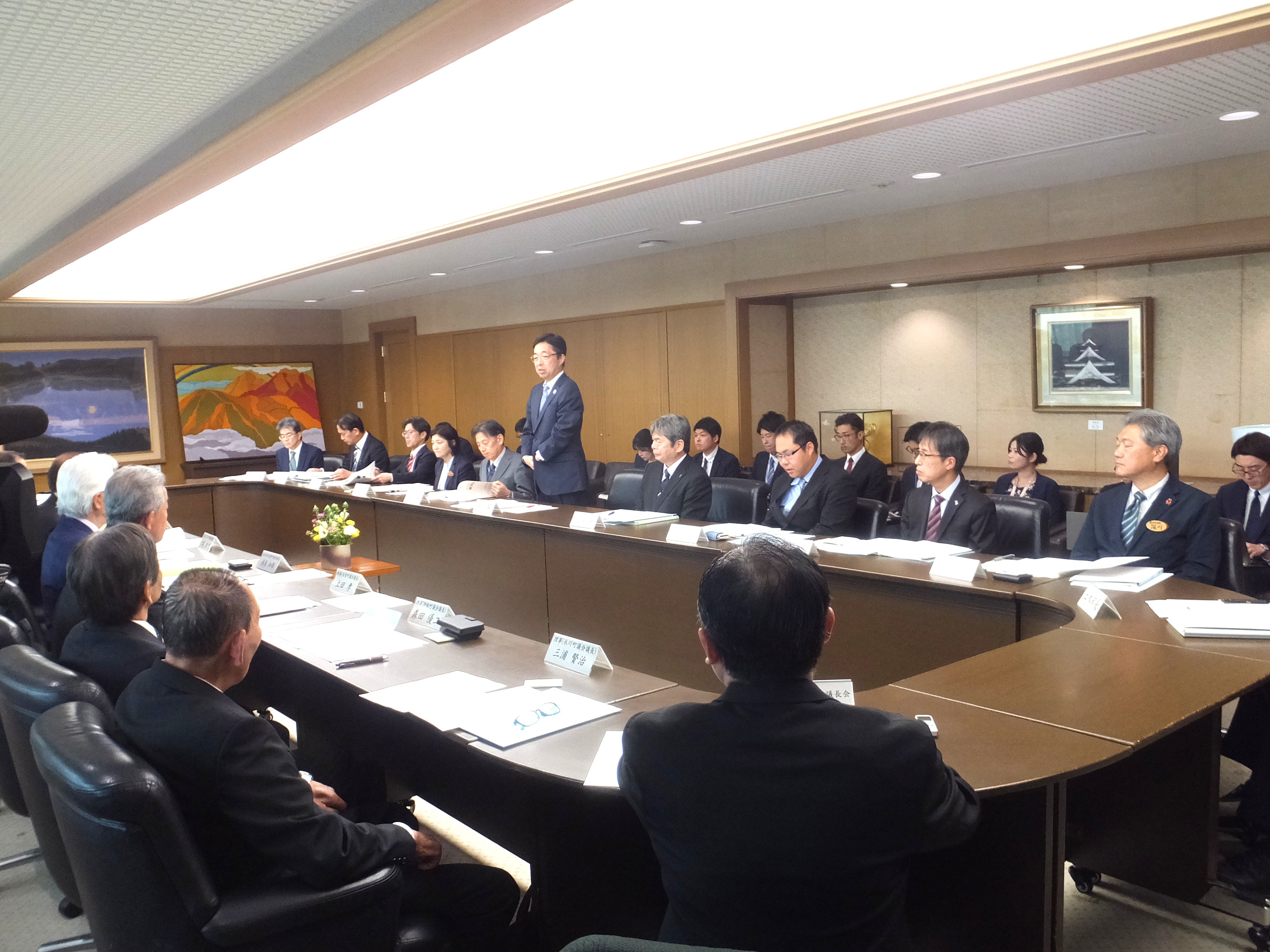 木村敬知事(中央)をはじめ関係部長らに要望する本会理事=熊本県庁
